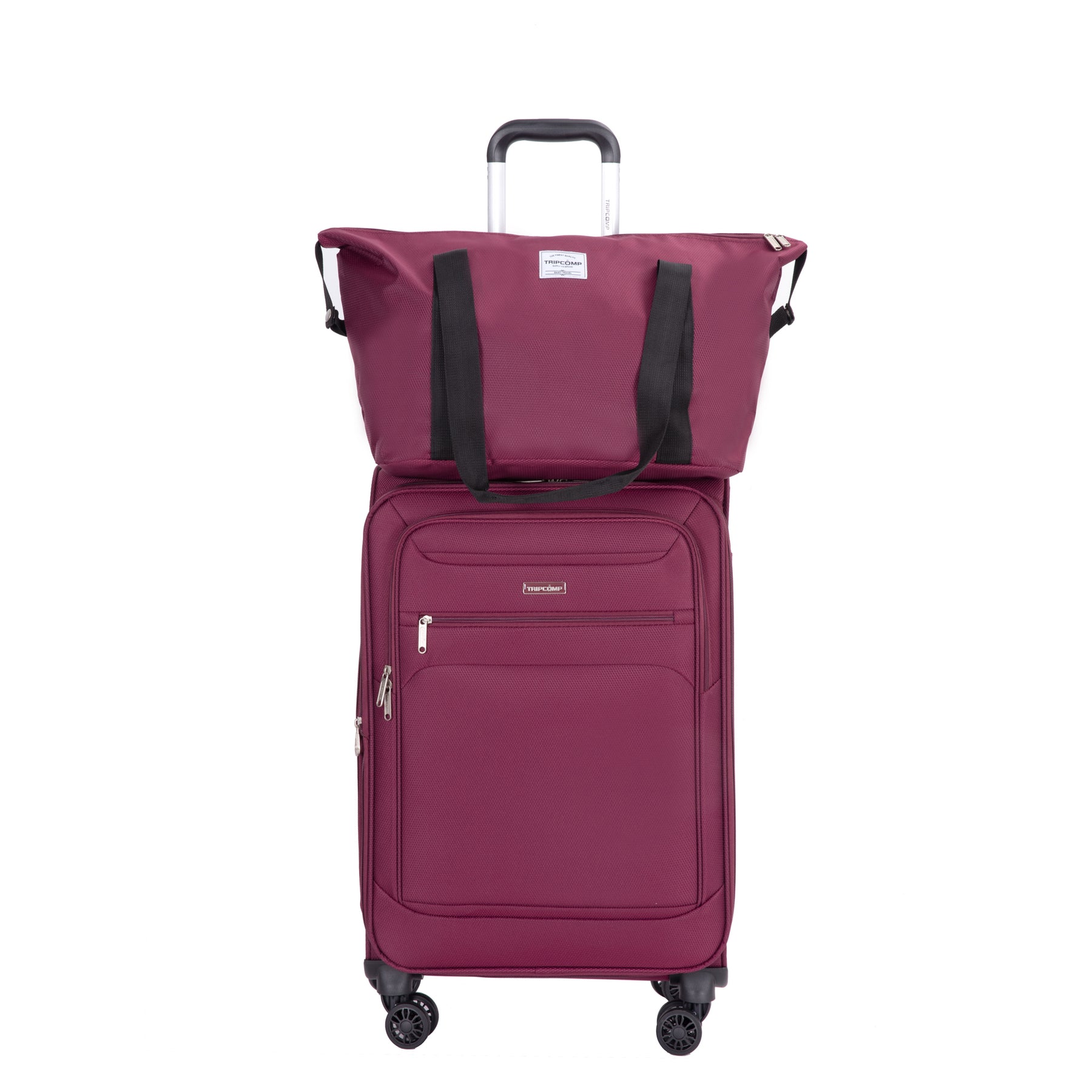 - Luggage Set : includes 18 inch carry on luggage, a travelbag and a toiletry bag. The Carry On Suitcase with wheels is sized to fit in overhead bins or underseat. The travel backpack is designed with a back sleeve that attaches to a retractable luggage handle. Large capacity and fully equipped to meet your different travel needs.