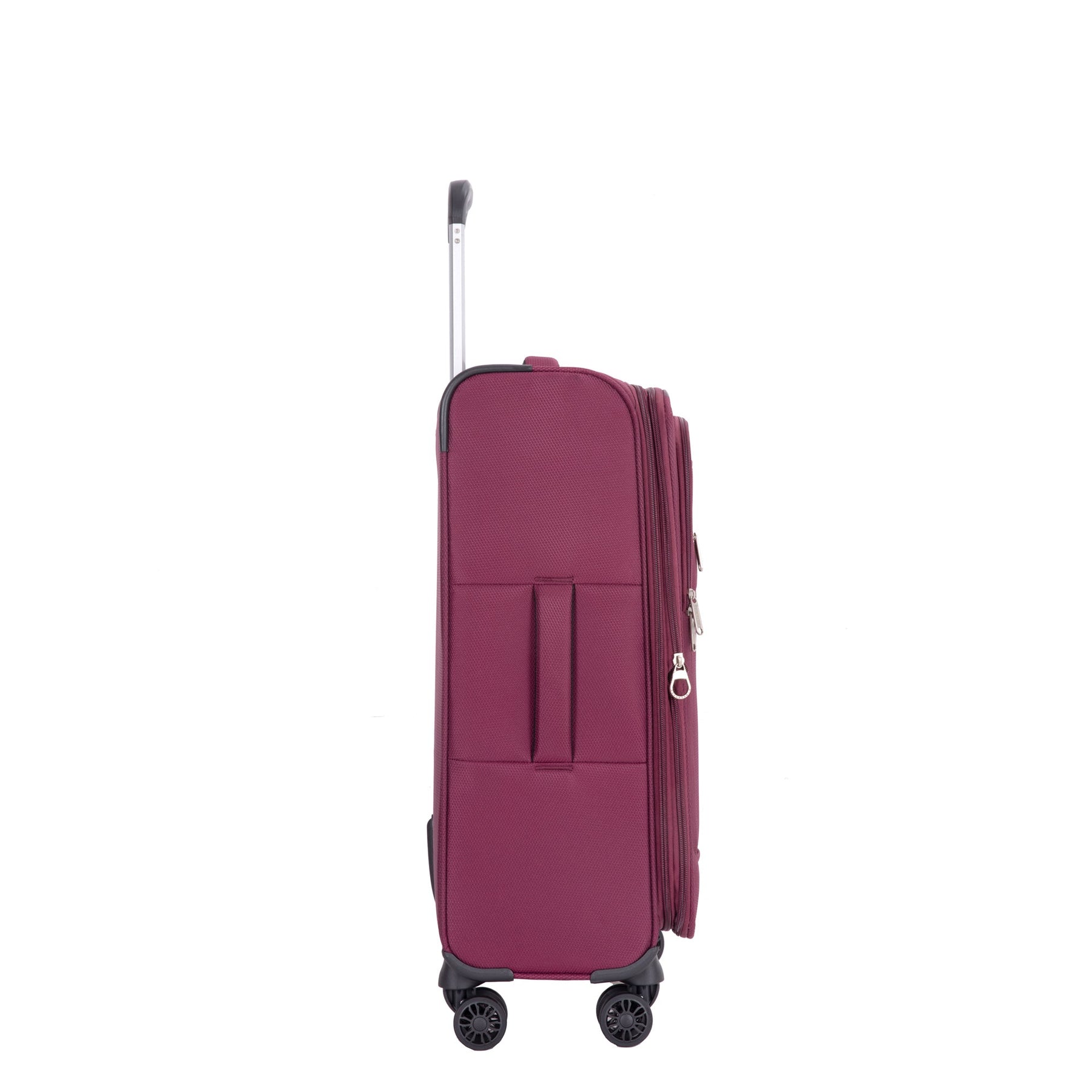 - Materials : Travel luggage is crafted from Terylene exterior offers extreme durability with a texture that reduces the visibility of scratches. Details such as the ergonomic 3-level retractable easy-grip top handle, and the soft rubber carry handles bring maximum comfort and an easy carrying experience.