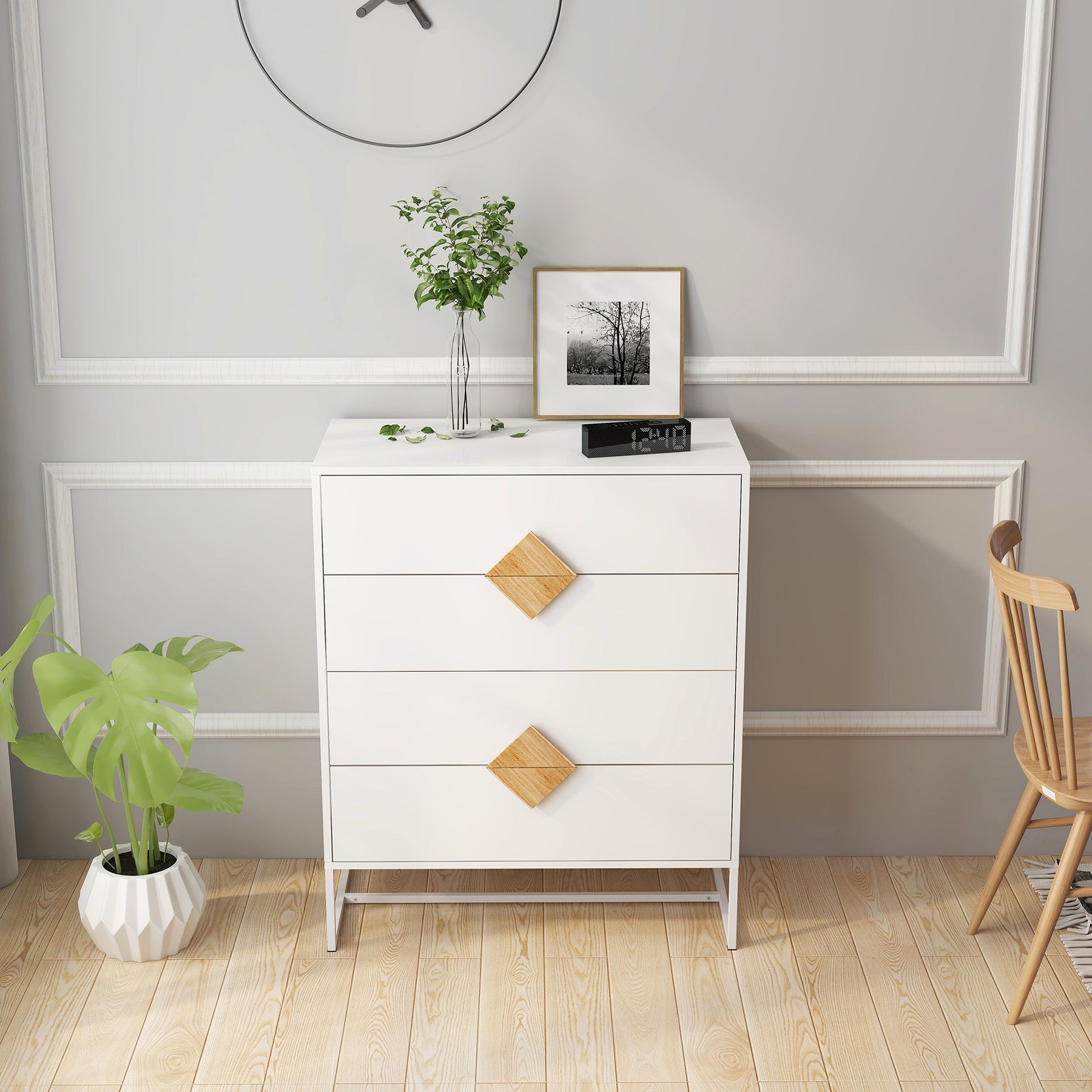 - Stable & Durable:This bedroom dresser is made of E1 MDF and iron frame stand, can with stand a maximum 80 lb, drawers can hold 10 lb.