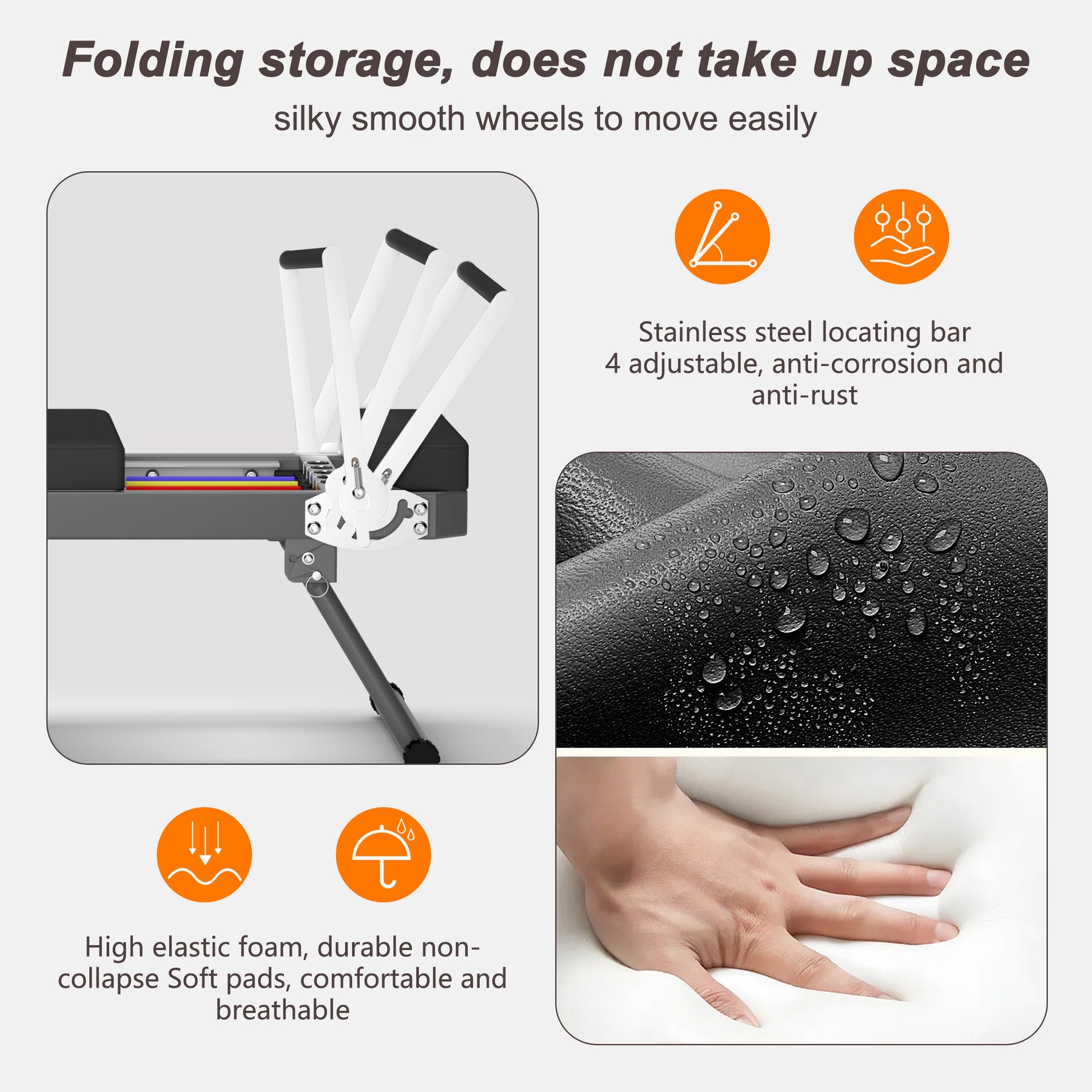 - Scenario Applies: you can leave the house at home to use Pilates exercise, end of use can be folded, comes with small wheels to move and carry more convenient can be stored in the corner at any time. pilates equipment Pilates as a gym essential fitness equipment, folding storage can make the gym to enhance the utilisation rate of the venue, to create a clean environment.